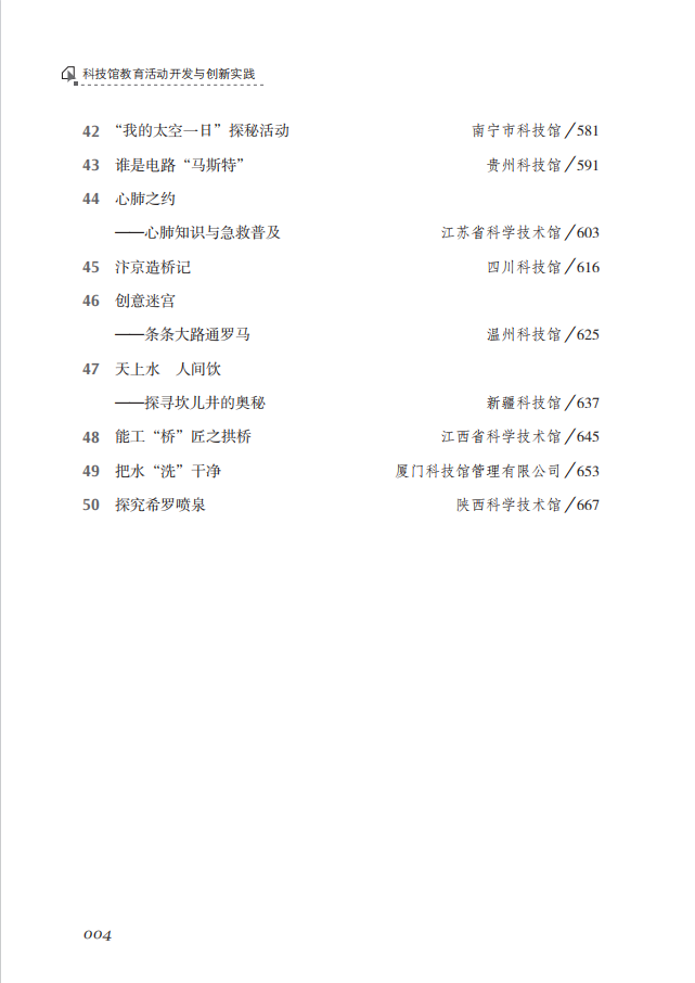 中国科学技术馆是我国唯一的国家级综合性科技馆,是实施科教兴国战略和人才强国战略、提高全民科学素质的大型科普基础设施。近几年,中国科技馆承担了3项国家级科研项目、省部级科研项目17项,横向科研项目4项,自主设立科研项目65项,合计89项。此外,组织编写了《科技馆研究文选》、《科技馆研究报告集》等学术图书,组织翻译了《当代科学中心》、《探索馆展品集》等国外著作。